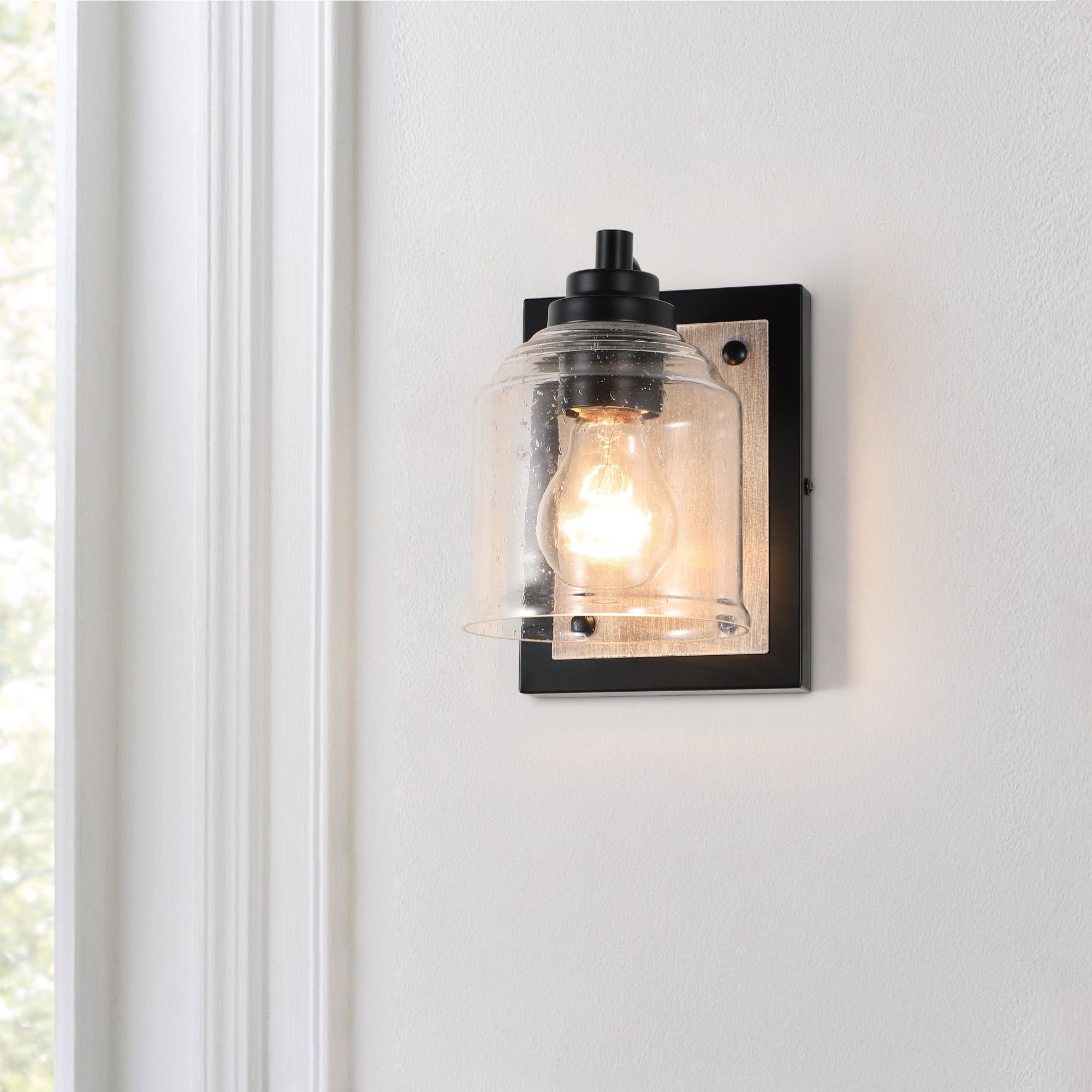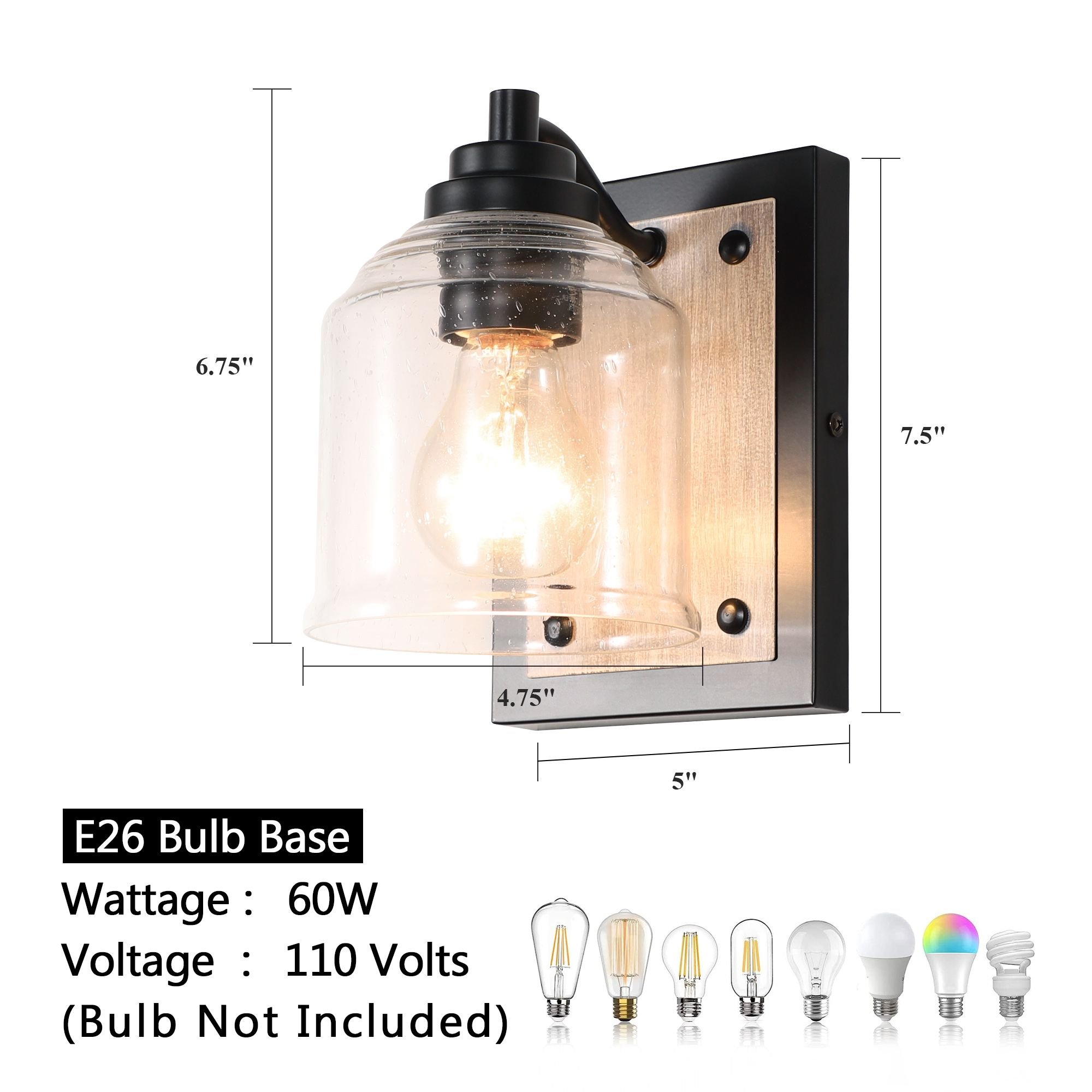 1.This sconces wall lighting is made of metal construction and seeded glass shade. Antique Wood grain finish design strike a perfect balance between vintage farmhouse and modern industrial. Ideal for a variety of home decor.