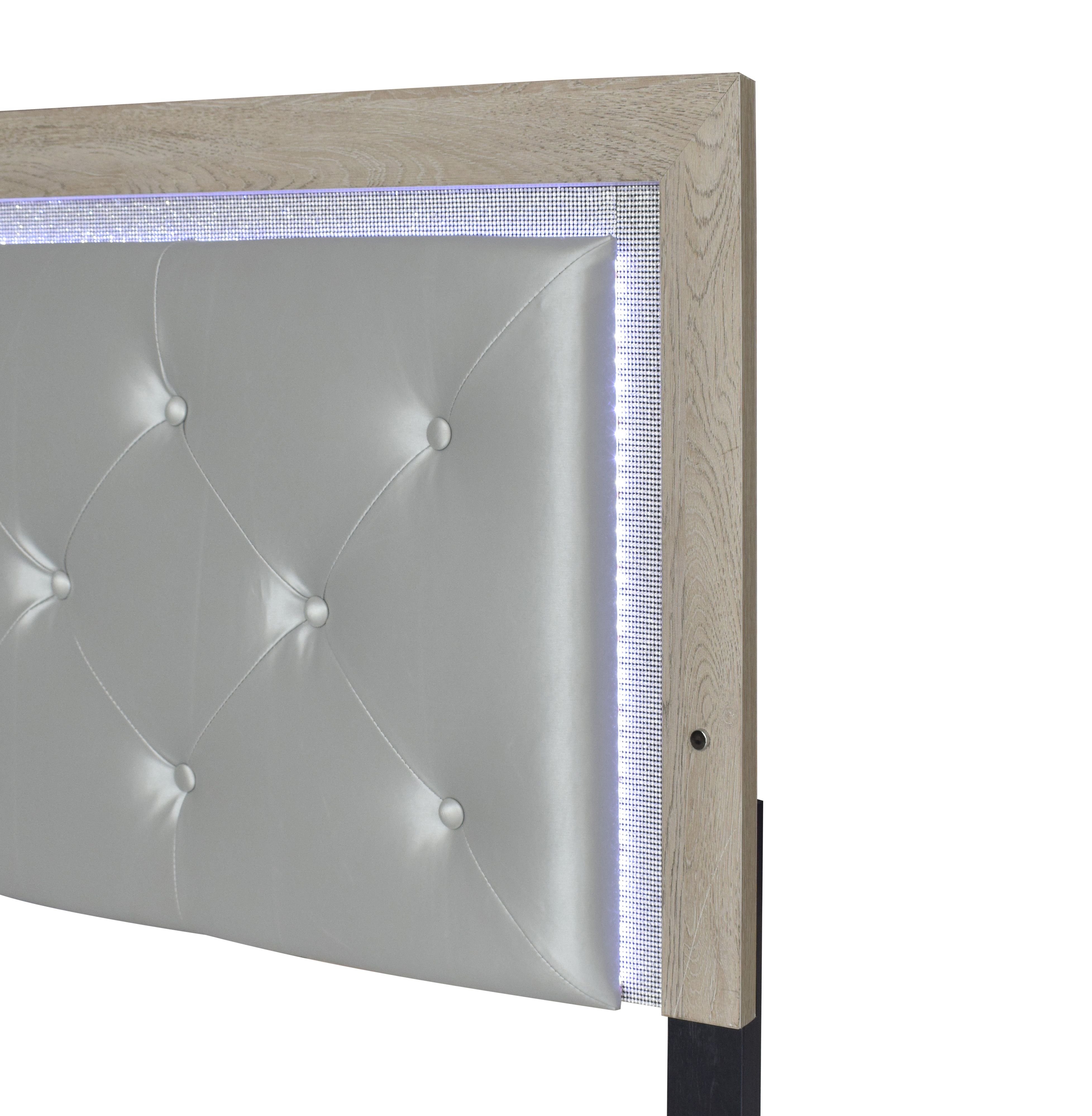 style collection. These pieces feature natural-looking finishes and designs of clean lines. It comes with LED & Upholstered Headboard for more style to your bedroom.