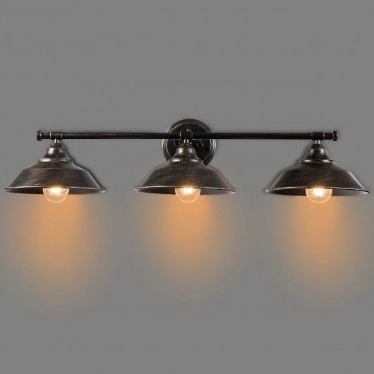 This three-headed dish cover wall lamp will not only illuminate your space but also illuminate your life.   It can be used not only as a lighting source but as a decorative piece of art. With golden edges it will perfectly fit any interior bringing it a vintage and industrial design. Any light bulb can be installed and used as long as it is compatible with the E26 base. Both incandescent and LED bulbs can be installed on our lamp. It's perfect for creating the perfect atmosphere in lofts porches cafes restaurants and other living and commercial spaces.   This will surely be your number one choice so don't hesitate and buy one now! The sturdy iron frame finish ensures that the lamp is corrosion and oxidation-resistant. The gold edges bring a classical appeal to any room. All connections and joints are carefully welded for your safety. The sturdy sconce base is made of metal which ensures its long-term service life. It is a perfect lighting source for living rooms bathrooms bedrooms and corridors. It can be used not only as a lighting source but as a decorative piece of art. The retro design gives a vintage and industrial look to any room. The assembly consists of only five installation steps. It comes with three 60-watt maximum incandescent light bulbs. Any light bulb can be installed and used as long as it is compatible with the E26 base. The lamp is UL certified.