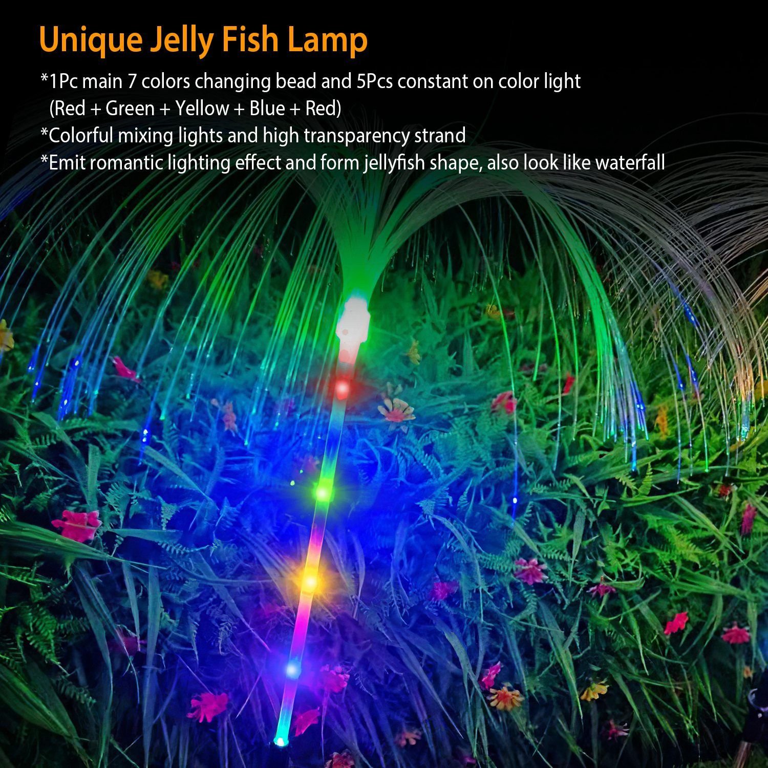 *Unique Jellyfish Lamp*:Inbuilt with 1Pc main 7 colors changing bead and 5Pcs constant on color light(Red+Green+Yellow+Blue+Red); with the colorful mixing lights and high transparency strand; emit romantic lighting effect and form jellyfish shape; also look like waterfall; very beautiful and eye catching at night.