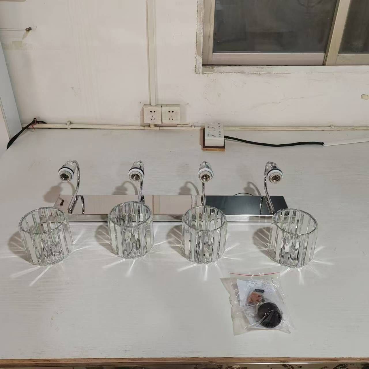 Indoor Decorative Lighting Iron Stainless Steel Crystal Bathroom Vanity Light Chrome Color 4-Light E26 Bulb Wall Lights
