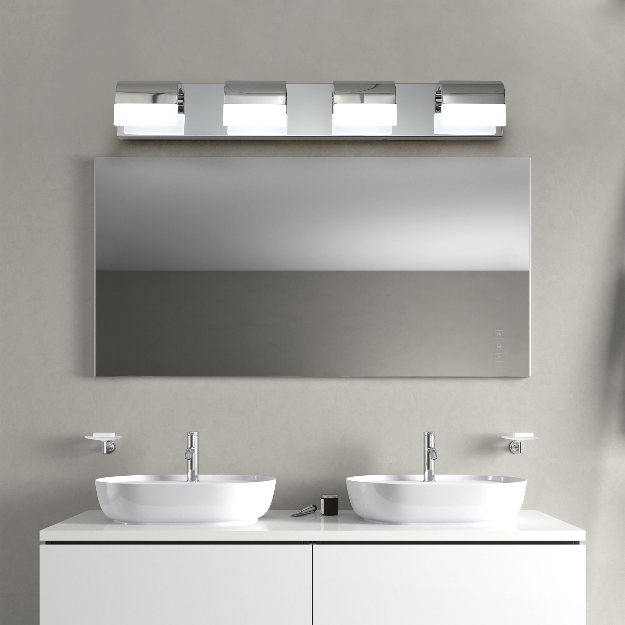 Chrome Modern Bathroom Vanity Lighting 4-Light LED Vanity Lights Over Mirror Bath Wall Lighting*STYLISH AND SIMPLE DESIGN: This chrome bathroom light fixtures has a stainless steel mirror base, acrylic shade and a built-in LED that emits a translucent, bright but not harsh light. *QUICK AND EASY INSTALLATION: This bathroom fixture is very easy to install, all mounting accessories are included in the package, just connect the wires and you can choose to install it up or down according to your preference. The comfortable Soft Light makes your life instantly brighter.
