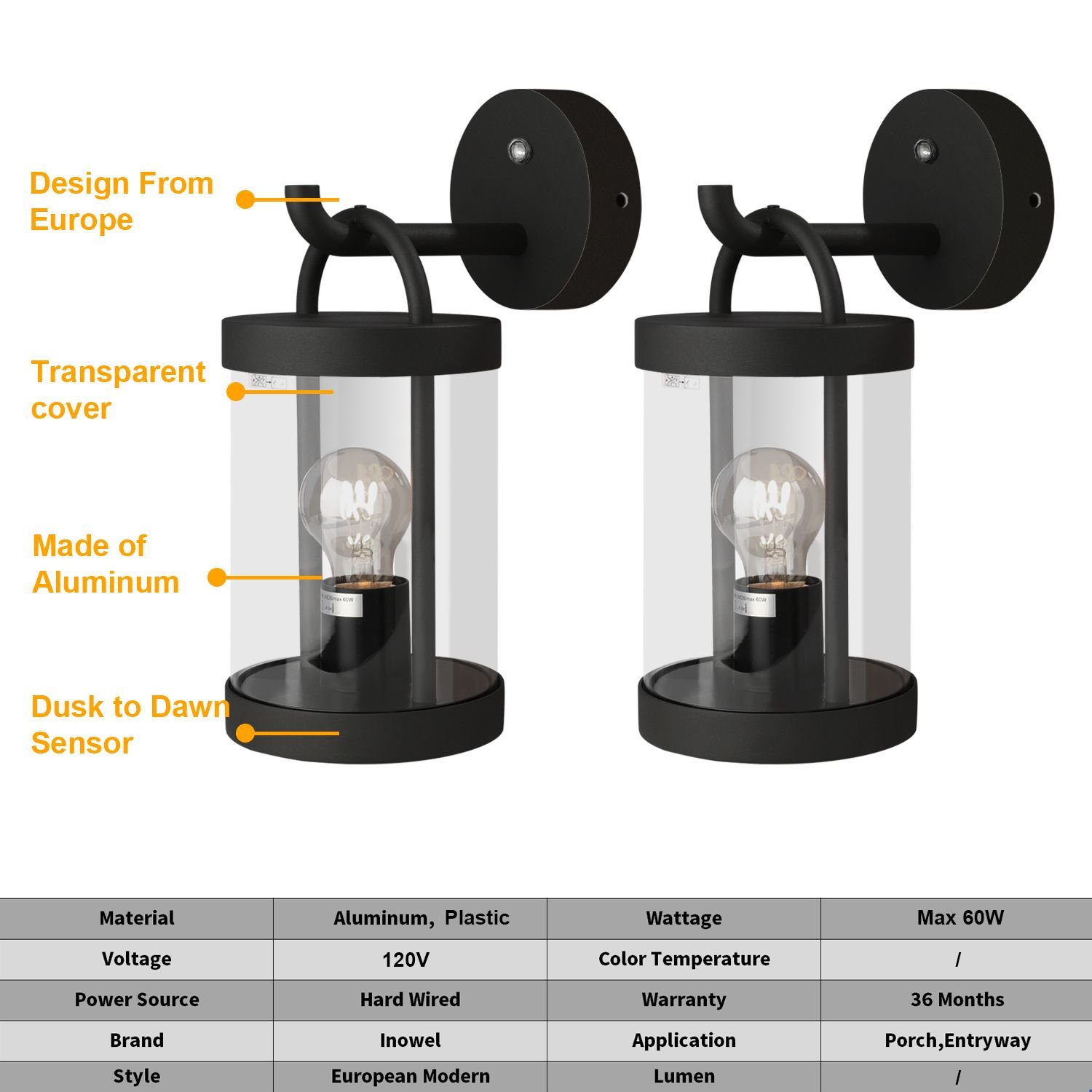 Made from high-quality aluminum and a sturdy glass housing; these outdoor wall lights with dusk to dawn sensors feature a stylish and convenient compound that complements any decor and are ideal for front and rear entryways or decorating your home.
